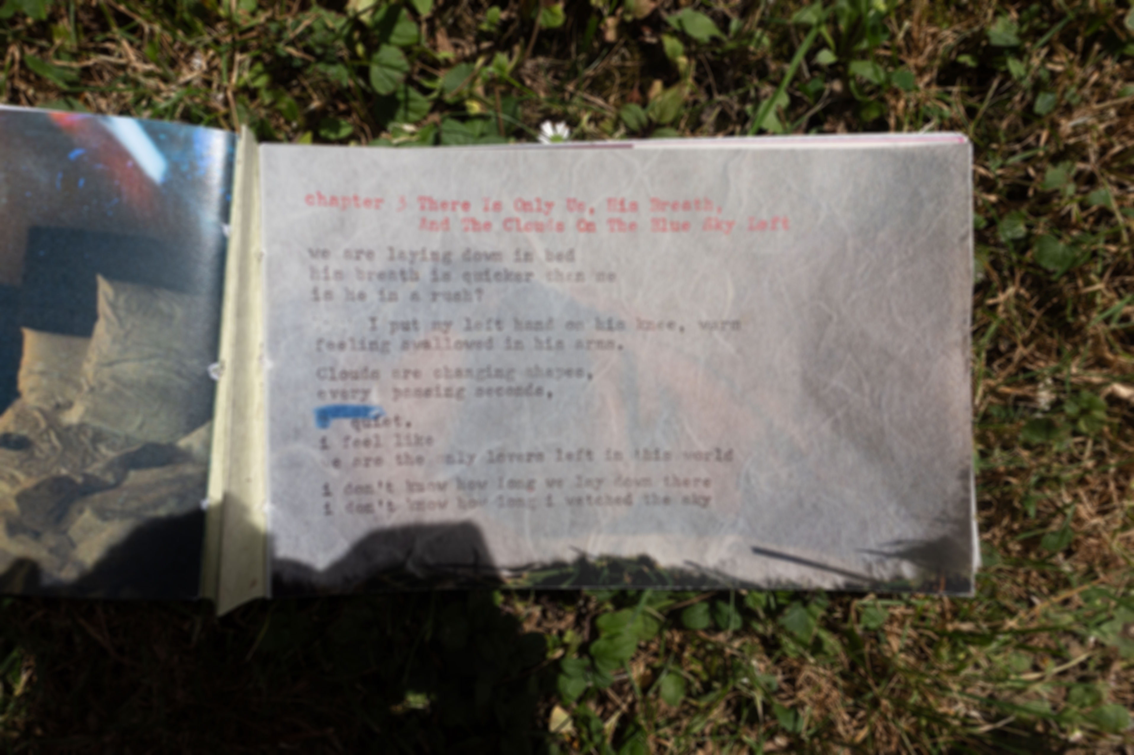 A Pillow of Clouds Vol 1. Five chapters, photography, writings, designed and bound by me.